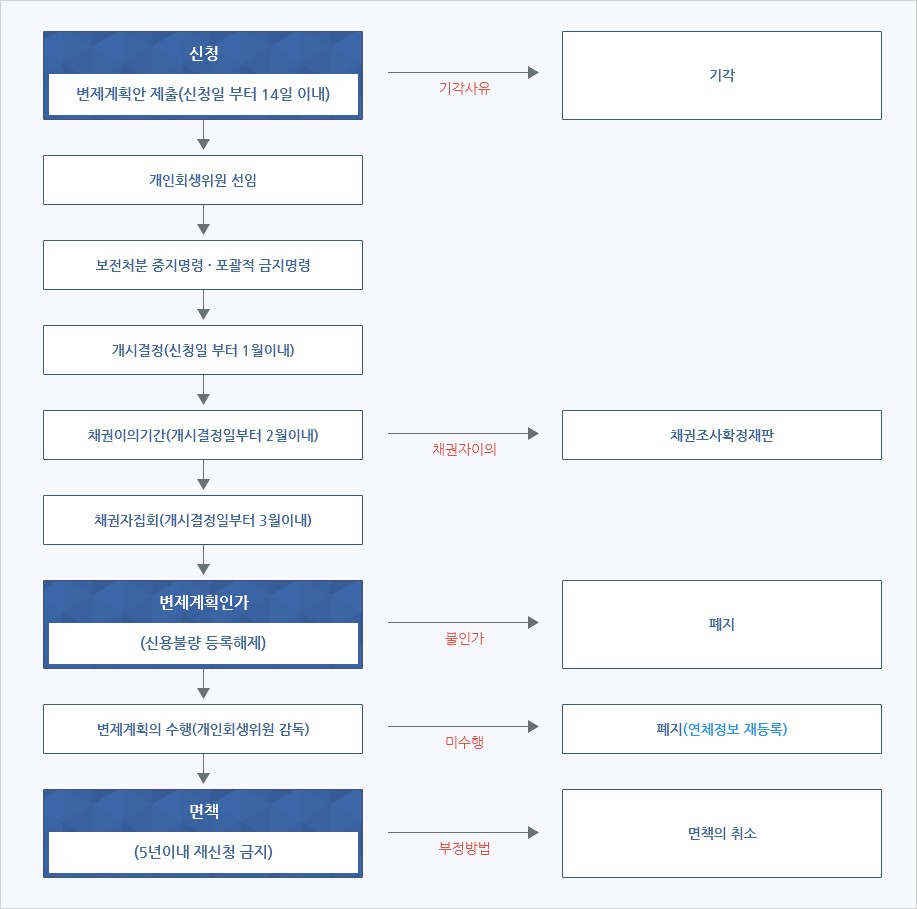 개인회생제도는 재정적 어려움으로 인하여 파탄에 직면하고 있는 개인채무자로서 장래 계속적으로 또는 방복하여 수입을 얻을 가능성이 있는 자에 대하여 채권자 등 이해관계인의 법률관계를 조정함으로써 채무자의 효율적인 회생과 채권자의 이익을 도모하기 위하여 마련된 절차라 할 수 있습니다.