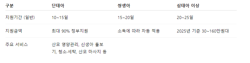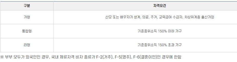 - 신청 후 서비스는 출산일 기준 60일 이내 개시 필요