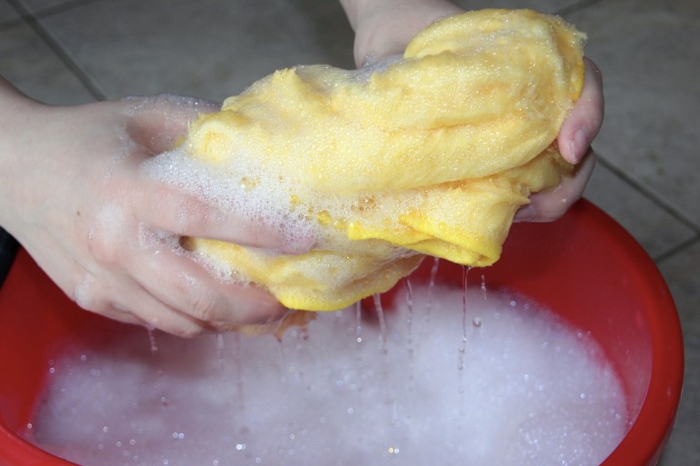 시간이 지나면 고무장갑을 끼고 칫솔이나 솔로 문질러 곰팡이를 제거하세요. 스펀지로 마무리하면 더욱 깨끗하게 닦입니다.