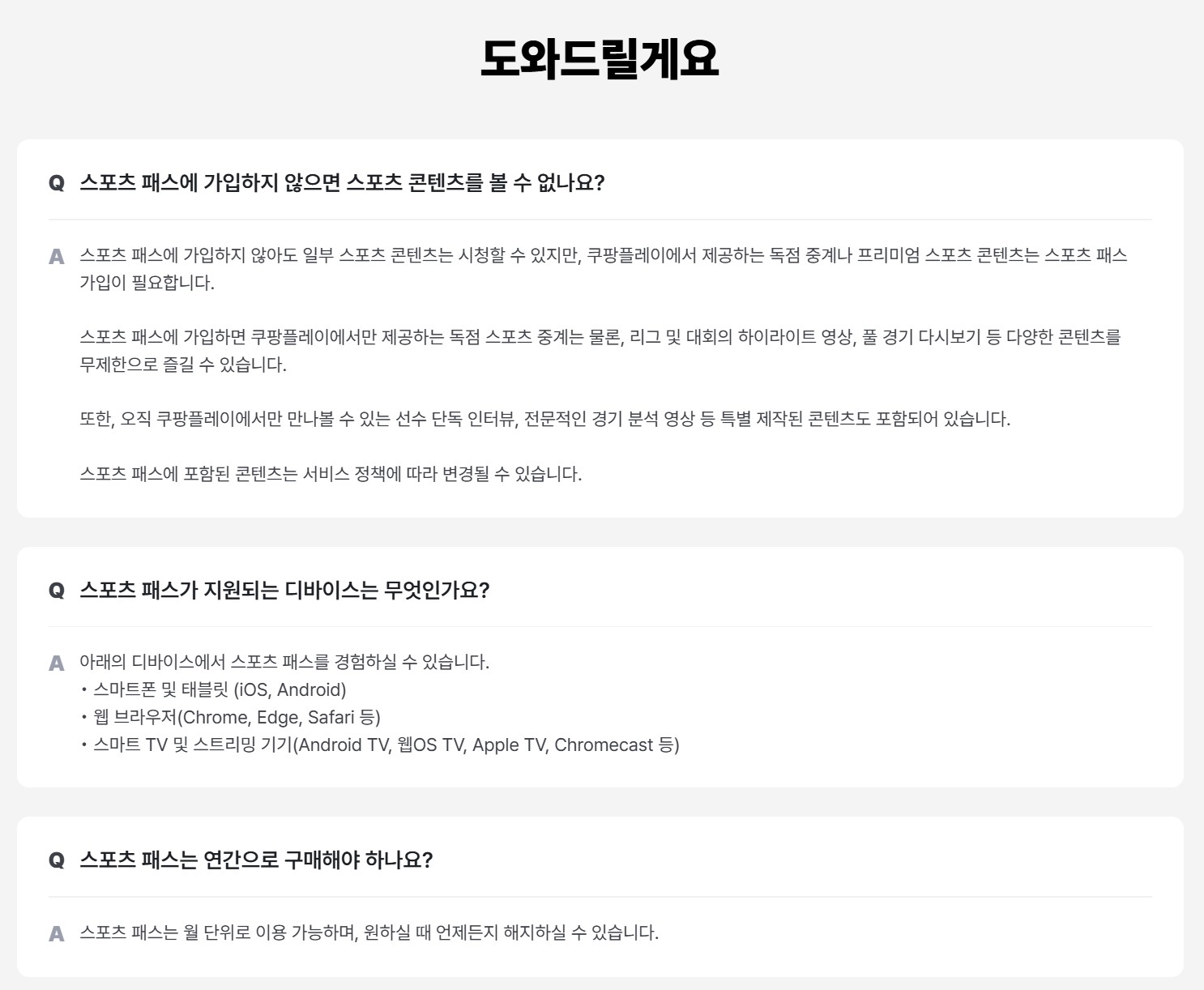 즉, "스포츠까지 챙겨보고 싶다!"면 스포츠패스를 추가 결제해야 한다는 거죠.