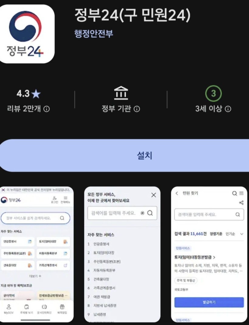 - 정부24 앱 설치 & 로그인