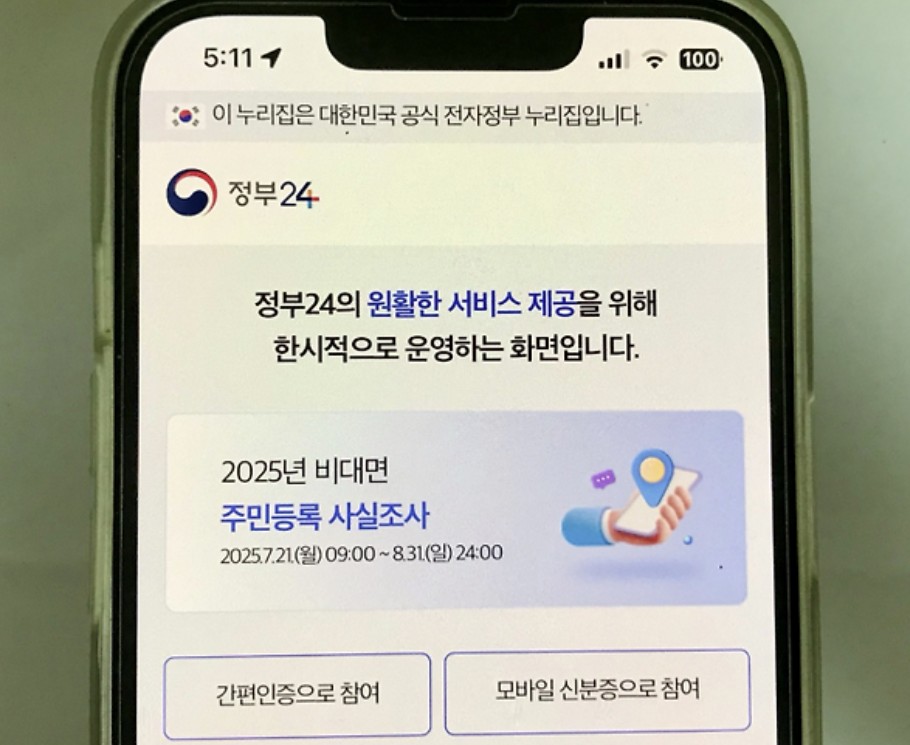 2025년에는 비대면 조사로 스마트폰으로 간단하게 참여 가능(주민등록 사실조사 비대면)!